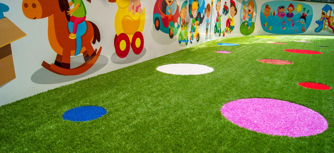 Realturf’s artificial grass for kindergardens is ideal for the little ones to enjoy playing knowing that they do it a 100% safe surface.