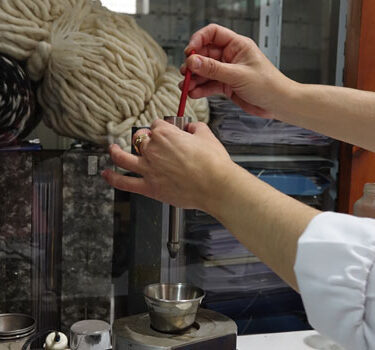 This is a key moment for the quality of our products and the proper use of the technology. The chosen raw materials are melted through an extrusion process in a perforated steel plate to create the threads that will be used later in the final product.