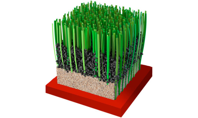 The base of the system is made with double backing, a polypropylene (PP) layer and a layer of woven fabric, to ensure the dimensional stability of the turf. A final latex